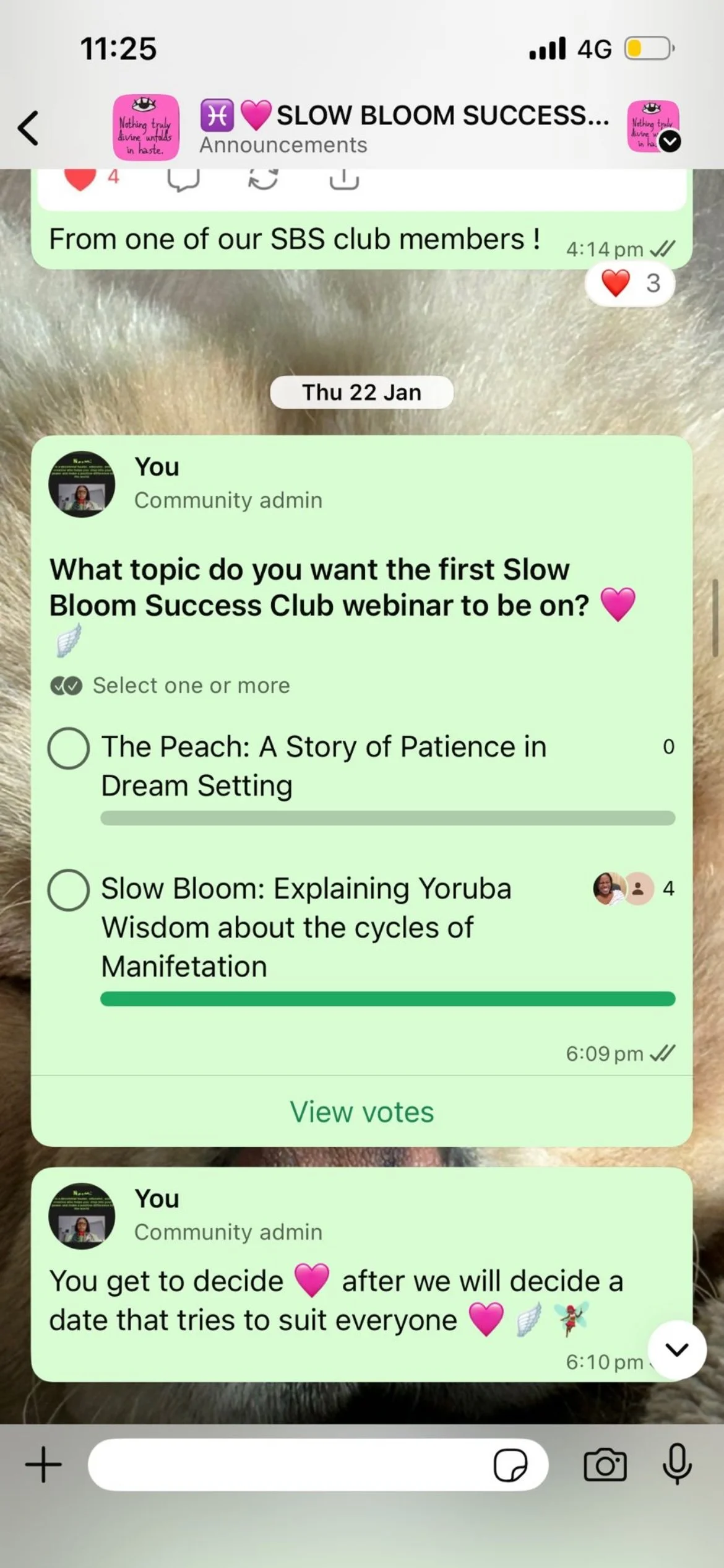 This is a beautiful, sacred, whatsapp group providing community and mentoring inspired by indegenous wisdom, for those who want to grow, create and manifest their personal and financial freedom at a sustainable, nourishing pace.